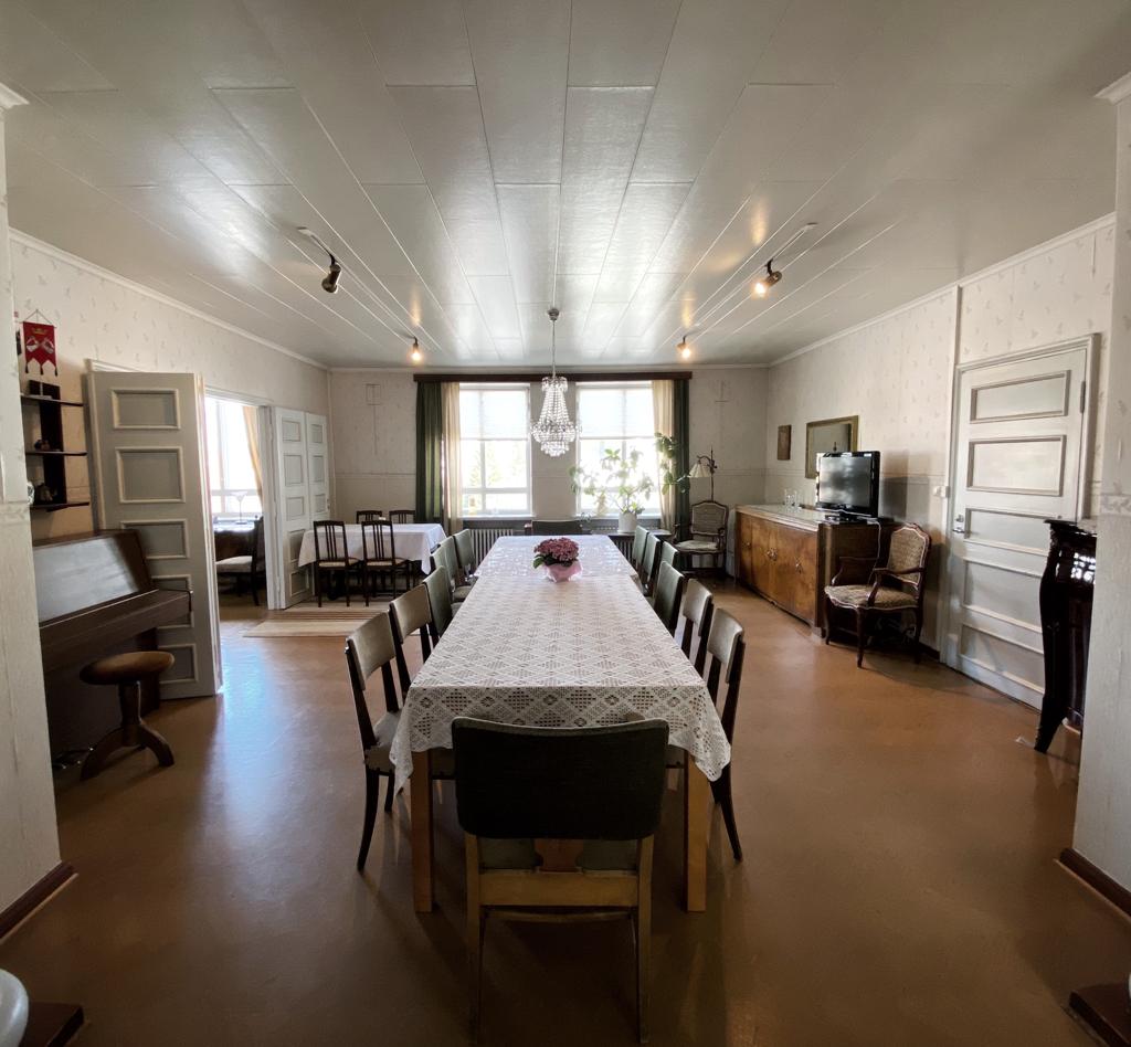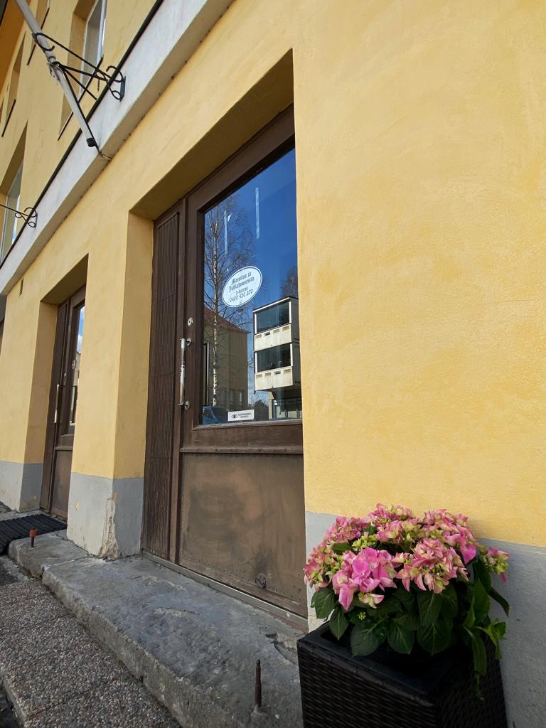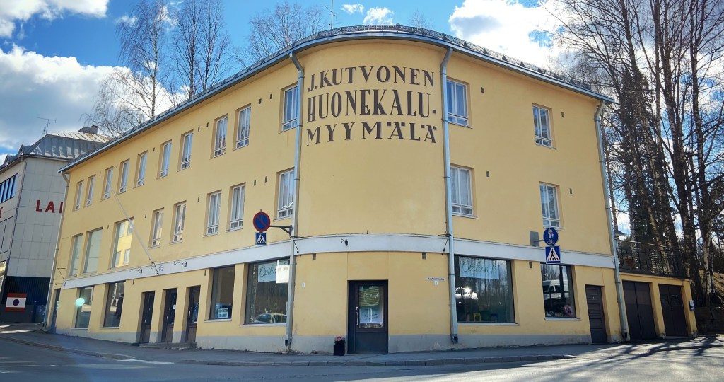 Talo on rakennettu 1933-1934 Julius Kutvosen (1896-1962) toimesta. Kolmen kerroksen hissittömässä talossa on sijainnut hänen asuntonsa, huonekalumyymälä sekä muita vuokratiloja. Vuoteen 2022 mennessä rakennusta on remontoitu niin majoitus- ja juhlatiloiksi sekä asuinhuoneistoiksi että liiketiloiksi. Lisää talon historiasta ja Julius Kutvosesta on luettavissa meillä paikan päällä.